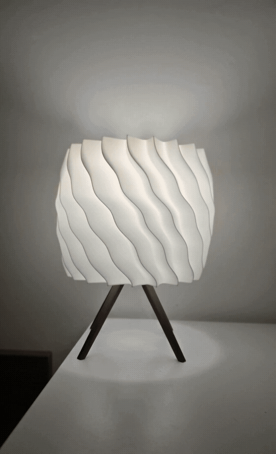 Abajur aktive edildiği anda, dikey kanallı doku üzerinden süzülen ışık tasarımın geometrik hatlarını ve koyu renkli kaide ile olan kontrastını net bir şekilde ortaya çıkarır. Ürün yavaşça kendi ekseni etrafında dönerken, ışığın yüzeydeki çizgisel hareketi ve modern formun mekana kattığı seçkin hava her açıdan sergilenir.