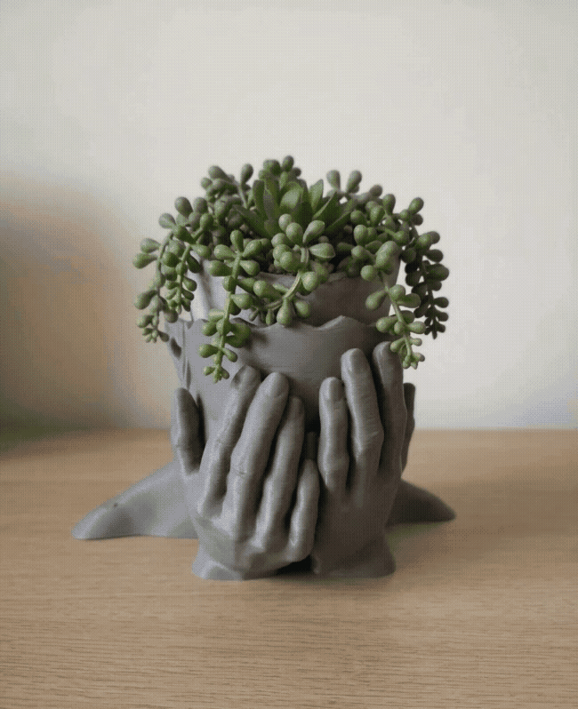 Yüzünü elleriyle kapatmış figüratif tasarımıyla iç mekanlara derinlik katan bu heykelsi saksı, bitkilerinizle bütünleşerek yaşayan bir sanat eserine dönüşür. Modern ve minimalist dekorasyon anlayışını doğanın huzuruyla buluşturan bu özel parça, her ortamda dikkat çekici bir estetik sunar.